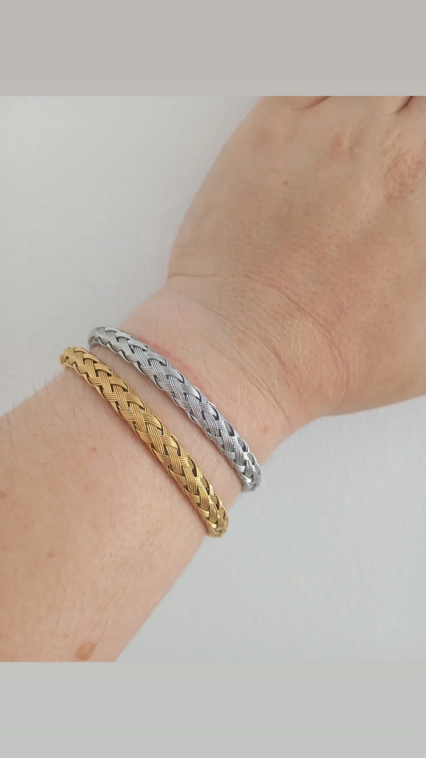 Ατσάλινη χειροπεδα πλεξούδα σε χρυσό και ασημί χρώμα, πολύ ευκολοφορετο πάει με όλα, εντυπωσιακό, μπορείς να φορέσεις ένα χρυσό και ένα ασημί μαζί και να κάνεις τη διαφορά.