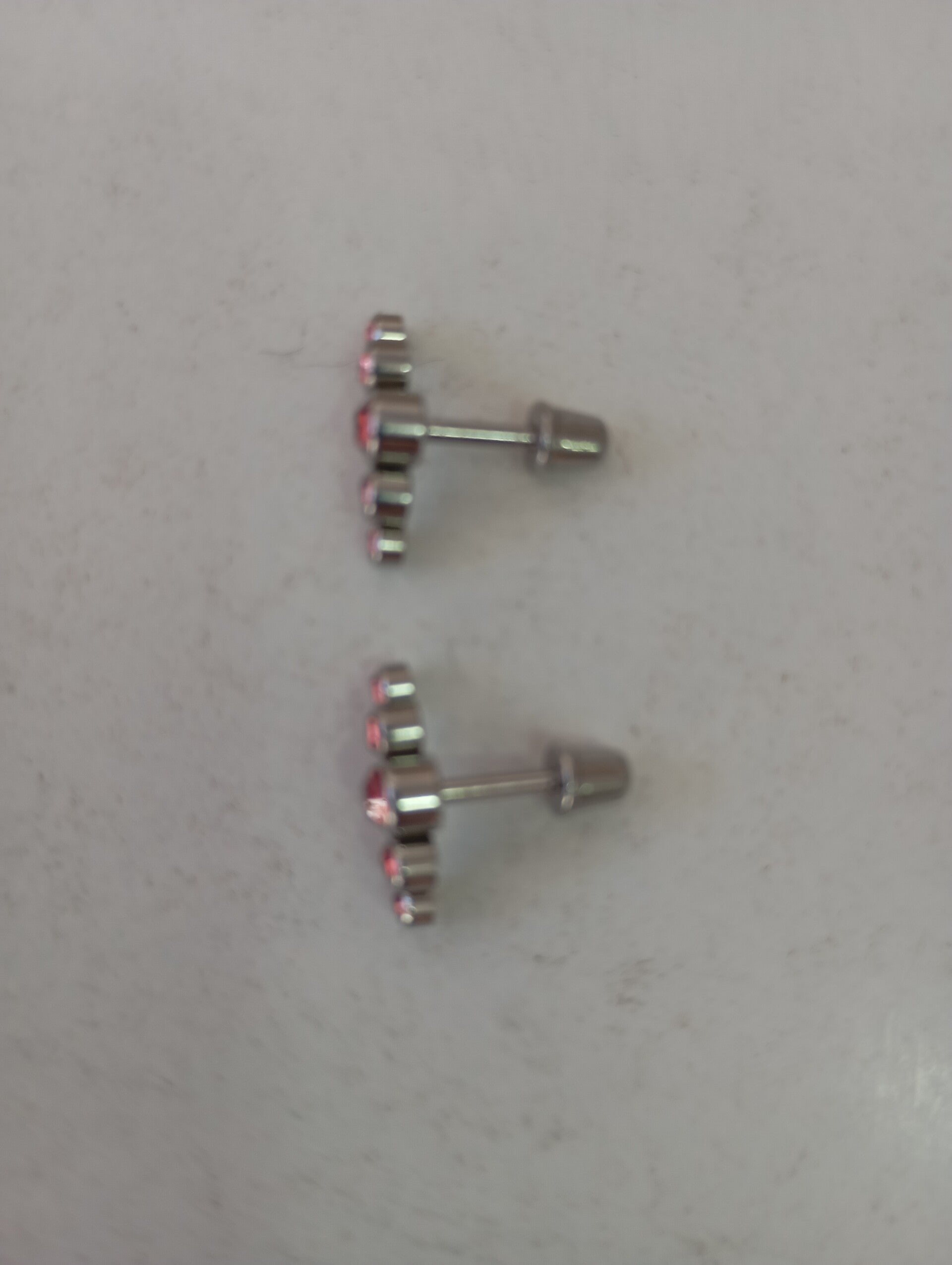 Ατσάλινα σκουλαρίκια με κυκλακια και ροζ διαμάντακι μινιμαλ με κυλινδρικό ατσάλινο βιδωτό κούμπωμα για εφέ ότι έχεις πολλές τρύπες. 1,5 cm.